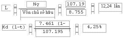 Hiệu suất sử dụng tài sảnTỷ số chi phí hoạt độngROIFROIFKd (1 - t)Khoảng cách đòn bẩyTỉ số L ( Nợ/VCSH)ROFLROE = ROIF + ROFL | 7,262,205,065,064,250,8112,24 lần9,9214,98 | 6,602,124,384,383,770,6112,19 lần7,4411,72 | 6,222,233,993,993,430,5612,50 lần7,0010,99 |