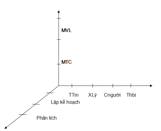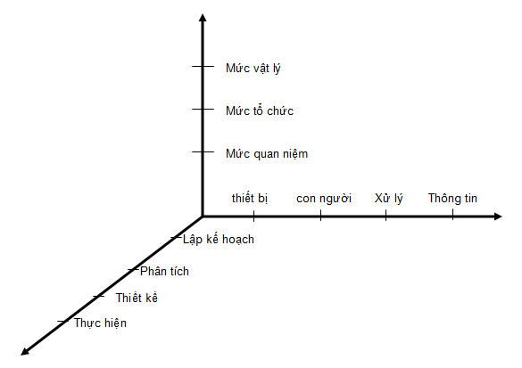 Có thể xem mỗi bước trong quá trình phân tích thiết kế hệ thống là một điểm trong không gian 3 chiều trong hình vẽ ở trên.