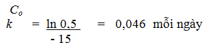 t = thời gian phản ứng, ngày.