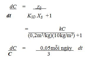 r0 = tốc độ phân huỷ sinh học chất gây ô nhiễm, kg/m3 .ngày