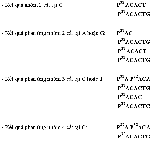 - Nhóm phản ứng thứ hai xử lí mạch đơn DNA bằng axit (pH=2) gây đứt mạch đơn tại A hoặc G.