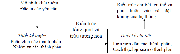 - Đồng thời đưa ra được kiến trúc (là trọng tâm) của hệ thống để đảm bảo cho hệ thống có thể thay đổi, có tính mở, dễ bảo trì, thân thiện với NSD, v.v. Nghĩa là tổ chức các lớp thành các gói hoặc các hệ thống con theo một kiến trúc phù hợp với nhu cầu phát triển của công nghệ (mạng, phân tán, v.v.) đồng thời phù hợp với xu thế phát triển của lĩnh vực ứng dụng.