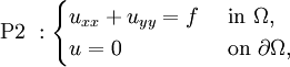Ở đây, miền Ω là một miền đơn liên mở trong mặt phẳng (x,y), có biên ∂Ω rất “đẹp” (ví dụ: một đa tạp trơn hoặc một đa giác), uxx và uyy là đạo hàm riêng cấp hai theo biến x và y.