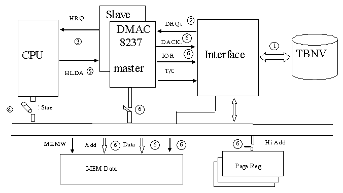 +Mức 6 CPU khởi đường BUS và 8237 chiếm đường BUS khi đó sảy ra các trường hợp sau