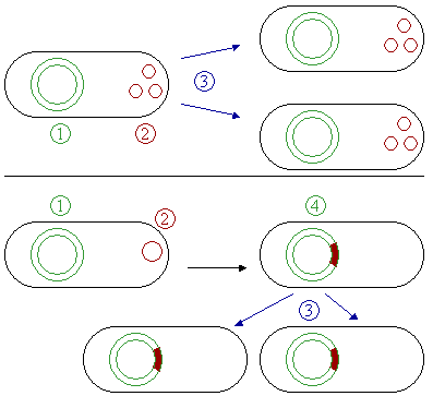 Những plasmid chỉ hiện diện với một hoặc một số ít bản sao trong vi khuẩn, khi tế bào vi khuẩn phân chia, sẽ có nguy cơ bị dồn về một trong hai tế bào con và tế bào con còn lại không còn bản sao nào của plasmid này. Để tránh bị mất đi sau phân bào, những plasmid một bản sao có các cơ chế để chủ động phân phối mỗi bản sao về một tế bào con.