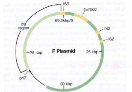 Hình 20.25 cho thấy bản đồ gen của plasmid F, một plasmid đã được nghiên cứu rất kĩ của Escherichia coli. Khỏang 25 gen trên F plasmid, bao gồm các gen sao chép ADN, các yếu tố thực hiện chức năng của một epixom và cuối cùng là một vòng cung ADN lớn, gọi là vùng tra, chứa những gen giúp nó tự di chuyển từ tế bào này sang tế bào khác.