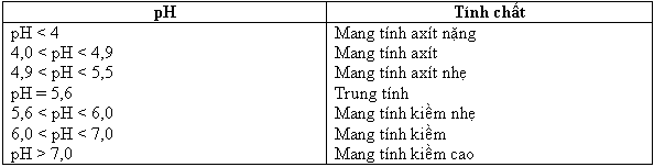 | pH trung bình sau 4 năm | 6,9 | 6,4 | 6,1 | 6,0 | 5,6 | 5,4 |