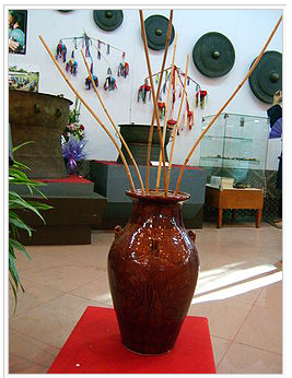 Chum, hũ, bình, chóe, ché (còn gọi là ghè) đựng toàn bộ nguyên liệu đã ủ men. Trước đây người ÊĐê thường dùng các loại ché Tuk, ché Tang màu da lươn là những loại ché quý dùng trong dịp lễ lớn nhưng hiện nay họ chỉ dùng các loại ché thường như ché ba. Còn người M’nông thì dùng các loại ché mà họ gọi là Yang Bung, R’ Lungman.