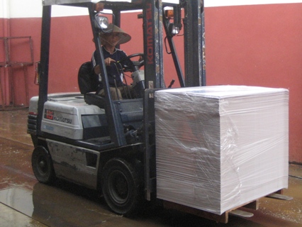 - Stack product/boxes/material on pallets to make it easier to load onto forklifts.