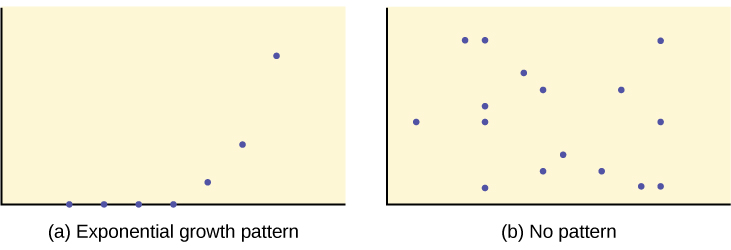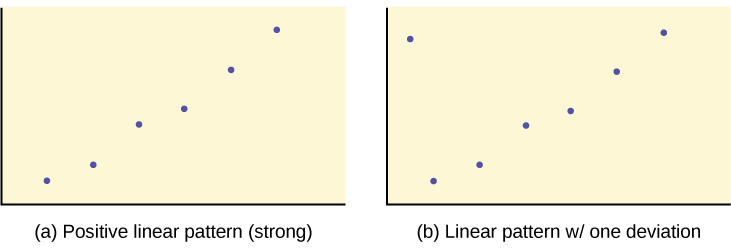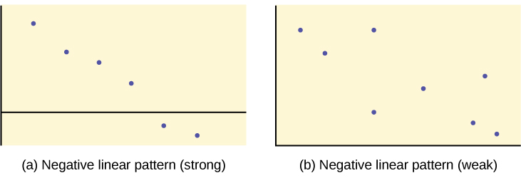When you look at a scatterplot, you want to notice the overall pattern and any deviations from the pattern. The following scatterplot examples illustrate these concepts.