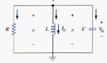 Consider the parallel RLC circuit shown in [link]. Assume initial inductor current I0 and initial capacitor voltage V0,