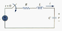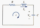 Consider the series RLC circuit shown in [link]. The circuit is being excited by the energy initially stored in the capacitor and inductor. The energy is represented by the initial capacitor voltage V0 and initial inductor current I0. Thus, at t = 0,