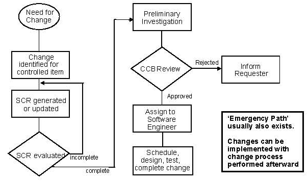 An effective software change request (SCR) process requires the use of supporting tools and procedures ranging from paper forms and a documented procedure to an electronic tool for originating change requests, enforcing the flow of the change process, capturing CCB decisions, and reporting change process information. A link between this tool capability and the problem-reporting system can facilitate the tracking of solutions for reported problems. Change process descriptions and supporting forms (information) are given in a variety of references.