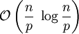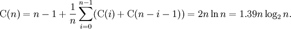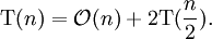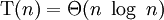 In sorting n items, merge sort has an average and worst-case performance of O(n log n). If the running time of merge sort for a list of length n is T(n), then the recurrence T(n) = 2T(n/2) + n follows from the definition of the algorithm (apply the algorithm to two lists of half the size of the original list, and add the n steps taken to merge the resulting two lists). The closed form follows from the master theorem.
