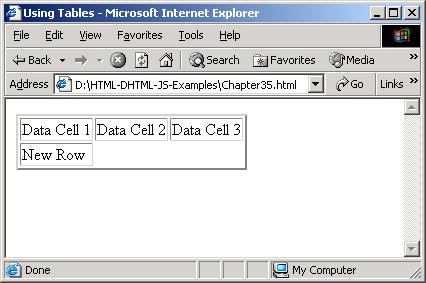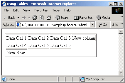 Hãy xem hình 5.4. Để xóa dòng thứ hai, chúng ta cần xóa thẻ <TD> cho ô dữ liệu 4, 5 và 6 cùng với thẻ <TR> mà nó kèm theo những thẻ <TD> này từ file HTML nguồn. Để xóa cột cuối cùng, đó là New column, chúng ta cần xóa thẻ <TD> lập nên ô này