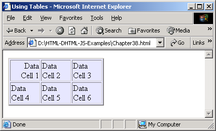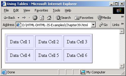 <TABLE BORDER = 2 BGCOLOR = lavender CELLSPACING = 2 CELLPADDING = 6>