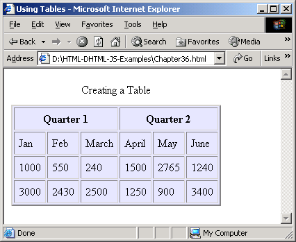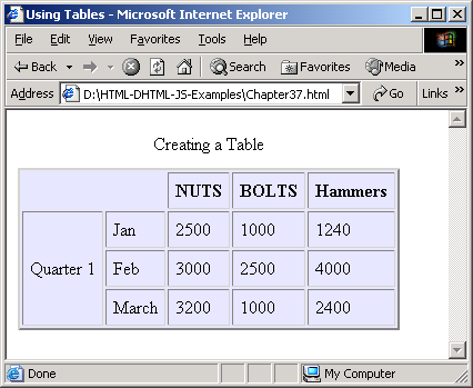 <TD ROWSPAN = 3>Quarter 1</TD>