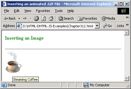 <IMG SRC=coffeecup.gif ALT="Steaming Coffee">