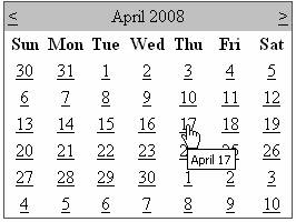 | NextMonthText | Chỉ định Text xuất hiện cho liên kết tháng tiếp theo |