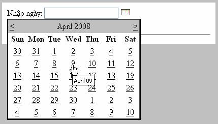| SelectMonthText | Cho phép hiển thị Text cho 1 tháng được chọn |