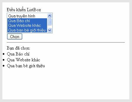 phép hiển thị một danh sách các lựa chọn, nguời sử dụng chỉ chọn một lựa chọn 1 lần