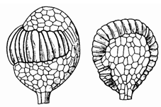 ra nguyên tản lưỡng tính hoặc đơn tính. Nó cũng giống như túi bào tử của thể sinh túi của ngành Rêu. Chu trình phát triển cá thể của chúng là lưỡng di truyền nhưng thể bào tử chiếm ưu thế (Lưỡng – Đơn bội) (diplohaplophase)
