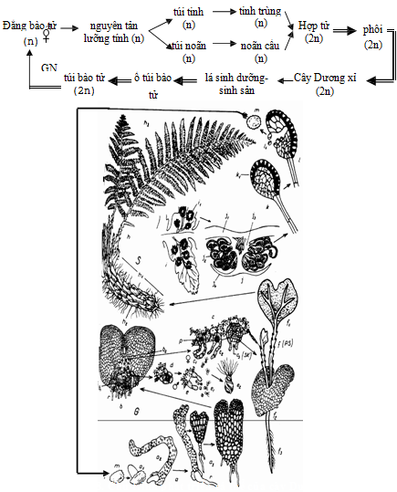 Sơ đồ tóm tắt tiêu biểu một số chu trình phát triển cá thể của các ngành Quyết