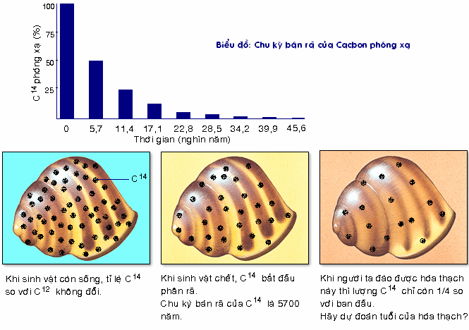 Vd: U238 chu kỳ bán rã 4.5 tỉ năm, C14 chu kỳ bán rã 5600 năm