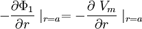 Dòng từ điện cực chỉ vào không gian giữa. Thực tế, điều kiện biên trong không gian giữa là tổng số dòng đi vào không gian tại r = a là tổng dòng được cung cấp Ia. Nhìn vào biểu thức 23.1 và định nghĩa về Vm sau tại r = a ta có
