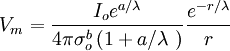 Bây giờ đẳng thức 9.28 mô tả trạng thái của Vm trong cùng dưới điều kiện cố định ( Vm = KAe − γ / λ / r). Nếu nó được thế vào 23.3 và được tính cho hệ số Ka thì thu được