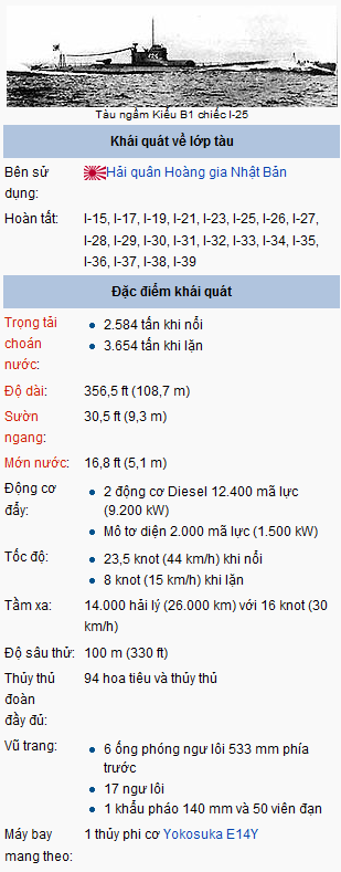 - Chiếc I-25 đã tiến hành vài cuộc tấn công gần Hoa Kỳ vào 09/1942. Nó bị đánh chìm bởi khu trục hạm USS Patterson ngoài khơi New Hebrides vào 03/09/1943.