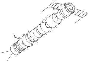 - Soyuz 7K-OK được cột bằng dây vào Block I.
