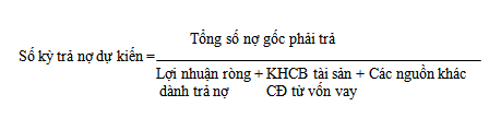 Từ công thức trên, nếu sau khi đã dự kiến số kỳ trả nợ và biết tổng số nợ gốc phải trả mỗi kỳ, NHTM có thể so sánh cân đối các nguồn thu từ dự án như lợi nhuận vòng, khấu hao cơ bản cho TSCĐ và các nguồn khác xem khả năng trả nợ có đảm bảo không.