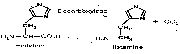 Các axit amin tự do chiếm khoảng 0,5-2% trọng lượng cơ thịt, chúng góp phần tạo nên mùi vị thơm ngon đặc trng của nguyên liệu. Hàm lượng axit amin tự do càng nhiều thì vi khuẩn gây hư hỏng phát triển càng nhanh và sinh ra mùi ammoniac. Các loài cá có cơ thịt sẫm và thường vận động như cá ngừ, cá thu có hàm lượng histidine cao. Cơ thịt sẫm chứa histidin nhiều hơn cơ thịt trắng. Trong thời gian bảo quản, histidine bị vi sinh vật khử nhóm carboxyl hình thành độc tố histamine.