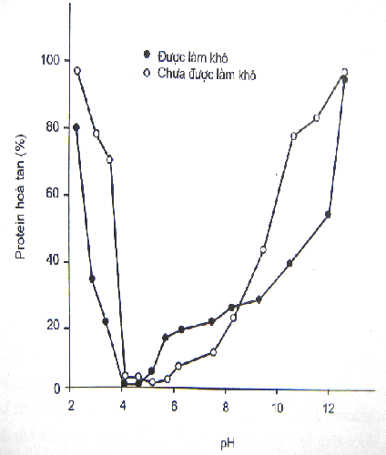 Hình 1.1. Sự hòa tan của protein tơ cơ trước và sau khi đông khô ở các giá trị pH từ 2 đến 12