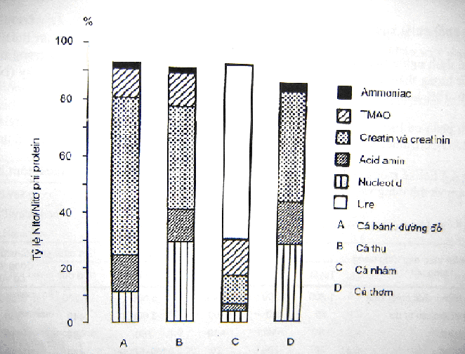 Thành phần chất trích ly chứa nitơ phi protein khác nhau phụ thuộc vào loài, kích cỡ, mùa vụ, phần cơ lấy mẫu, ….
