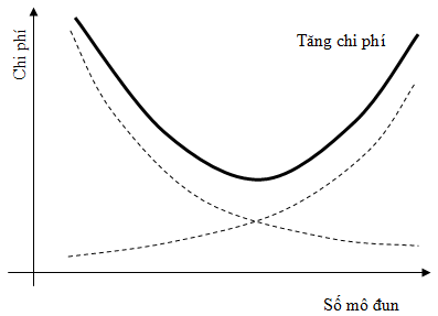 Phần mềm được chia thành các thành phần có tên riêng biệt và xác định được địa chỉ, gọi là các mô đun, được tích hợp để thỏa mãn yêu cầu của vấn đề. Người ta nói rằng: tính môđun là thuộc tính riêng của phần mềm cho phép một chương trình trở nên quản lý được theo cách thông minh. Người đọc không thể nào hiểu thấu phần mềm nguyên khối (như một chương trình lớn chỉ gồm một môđun). Điều này dẫn đến kết luận “chia để trị” sẽ dễ giải quyết một vấn đề phức tạp hơn khi chia nó thành những phần quản lý được. Với cùng một tập hợp các yêu cầu, nhiều môđun hơn có nghĩa là kích cỡ từng môđun nhỏ; độ phức tạp giảm và chi phí cho phát triển môđun giảm. Nhưng khi số các mô đun tăng lên thì nỗ lực liên kết chúng bằng việc làm giao diện cho các môđun cũng tăng lên. Đặc trưng này dẫn đến đường cong tổng chi phí (nỗ lực) như trong hình 2.