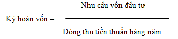Kỳ hoàn vốn của một dự án được xác định theo công thức: