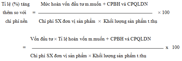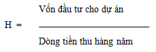 - Xác định hệ số của tỉ lệ sinh lời (H), bằng cách đem chia vốn đầu tư với dòng tiền thu được hàng năm theo dự tính. Ta có: