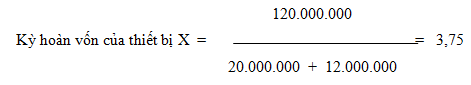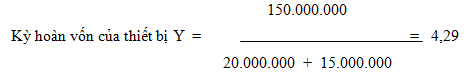 Sử dụng số liệu trên, kỳ hoàn vốn đầu tư vào thiết bi X và Y được tính như sau: