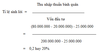 Theo phương pháp này, tỉ lệ sinh lời giản đơn được tính: