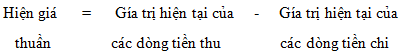 Hiện giá thuần của một dự án đầu tư là phần chênh lệch giữa giá trị hiện tại của các dòng tiền thu với giá trị hiện tại của các dòng tiền chi liên quan đến dự án. Hiện giá thuần chính là cơ sở cho việc xem xét và ra các quyết định đầu tư đối với các dự án đầu tư dài hạn.
