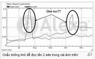 Phân tích chỉ số truy cập Alexa ở một số trang web hàng đầu ở Việt Nam, không khó tìm ra những trò “qua mặt” Alexa quá lố (như ảnh trên). Những “ngón nghề” này thể hiện cách thức làm ăn chộp giật, tăng thứ hạng (rank) thật mạnh rồi đi lừa những khách hàng thiếu hiểu biết rằng “Alexa là chỉ số quốc tế về đánh giá trang web, tôi đang đứng top 100!, hãy trả tiền quảng cáo cho tôi”. Nhưng sớm muộn gì người dùng cũng sẽ hiểu Alexa chưa hẳn là chính xác.