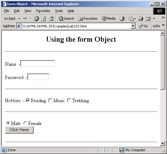 <H2 ALIGN = "CENTER"> Using the form Object </H2><HR>