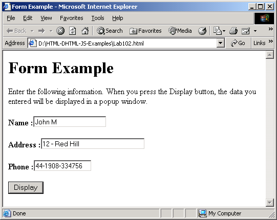 <INPUT TYPE="button" value="Display" onClick="disply();">