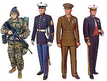 Thủy quân lục chiến có các loại quân phục dễ nhận biết và ổn định nhất trong Quân đội Hoa Kỳ. Quân phục nghi thức màu xanh có lịch sử từ đầu thế kỷ 19 và quân phục nghiệp vụ đầu thế kỷ 20. Quân phục Thủy quân lục chiến cũng đơn giản rõ rệt. Thủy quân lục chiến không đeo phù hiệu đơn vị ở cầu vai hay cờ Hoa Kỳ trên bất cứ quân phục nào của họ. Họ cũng không có mang bảng tên trên quân phục nghi thức và hay quân phục nghiệp vụ của mình. Chỉ có một số nhân sự có kỹ năng (nhảy dù, nhân sự phi hành, tháo chất nổ, etc.) là có mang các băng hiệu đặc biệt. Quân hàm cũng không có mang trên các mũ nón. Trong khi các quân nhân thuộc các quân chủng khác thường được nhận dạng mình thuộc binh chủng nào, thí dụ như biệt kích, nhân sự tàu ngầm, nhân sự phi hành,...) nhưng quân phục của Thủy quân lục chiến không phản ánh sự phân biệt đó.