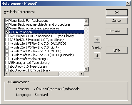 - Hộp thoại References xuất hiện, chọn vào hộp đánh dấu. nếu tên tham chiếu chưa có sẵn trong danh sách, nhấn Browse vào ứng dụng và ấn OK