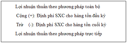 - Giá trị hàng tồn kho trên BCĐKT theo phương pháp tính gía trực tiếp sẽ nhỏ hơn so với trường hợp tính giá theo phương pháp toàn bộ.