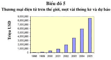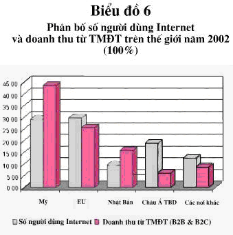 Trong tổng khối lượng TMĐT toàn thế giới, thương mại B2B chiếm khoảng 50%, dịch vụ tài chính và các dịch vụ khác khoảng 45%, bán lẻ khoảng 5%. Tuy nhiên, TMĐT chỉ được áp dụng tương đối rộng rãi ở các nước công nghiệp phát triển (Mỹ hiện chiếm gần 50% tổng doanh số TMĐT toàn cầu). Theo biểu đồ 6, các nước đang phát triển mặc dù chiếm 1/3 số người sử dụng Internet nhưng hoạt động TMĐT ở các nước này là không đáng kể.