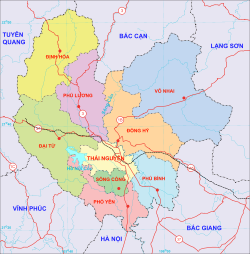7 huyện: Phổ Yên, Phú Bình, Đồng Hỷ, Võ Nhai, Định Hóa, Đại Từ, Phú Lương.